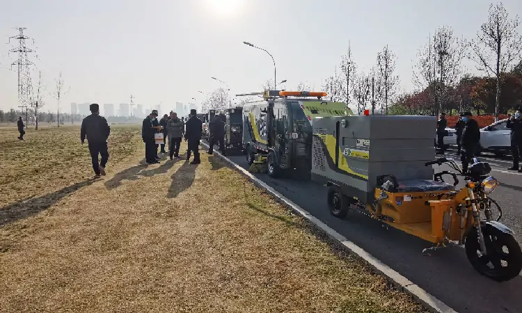 三輪高壓清洗車以及其他環(huán)衛(wèi)車輛試車現(xiàn)場