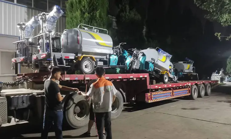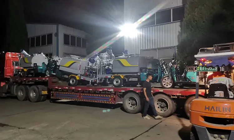 多日的加班加點終于在交貨日當天完成了所有小型電動灑水車的安裝以及調試,經過功能測試開始裝車發貨。此次發往某環衛公司的這批小型電動灑水車配備了對沖,霧炮,高炮等功能,不僅可以用于日常的道路灑水作業,也能用于霧炮降塵,園林澆水,地面高壓沖洗等工作,適用于小區,社區,學校,園區,廠區,鄉鎮等場景。